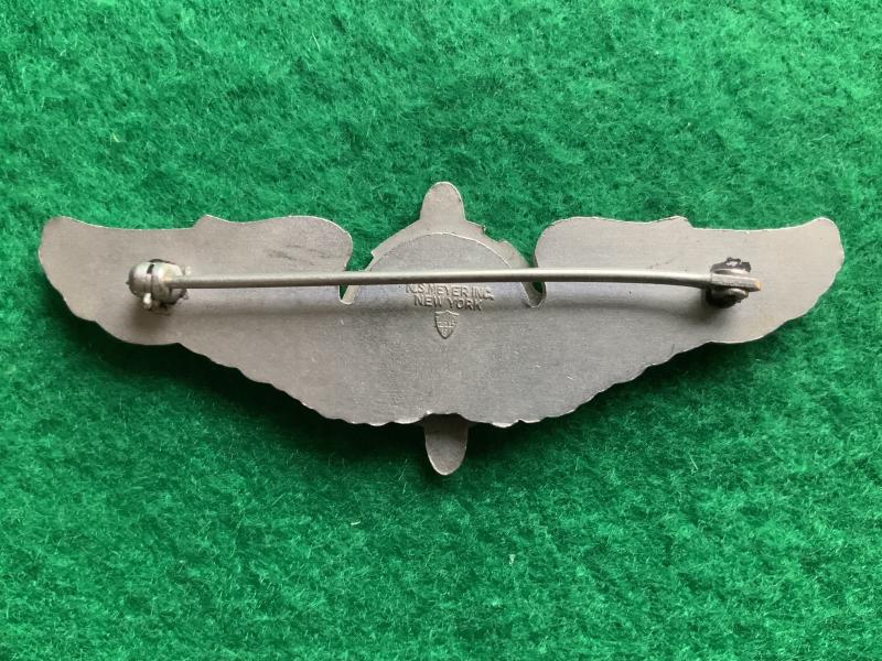 A good example wing, late war USAAF Flight Engineer wing. Pin back with safety catch. Hallmarked NS Meyer New York.