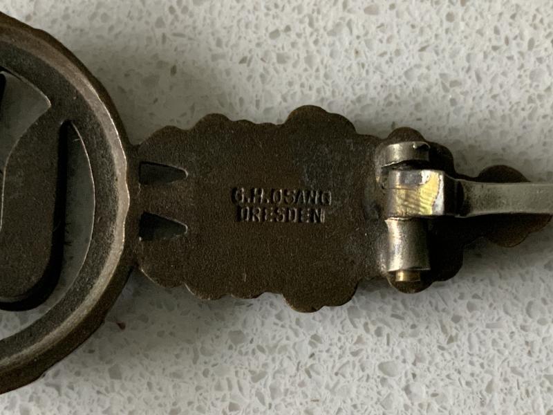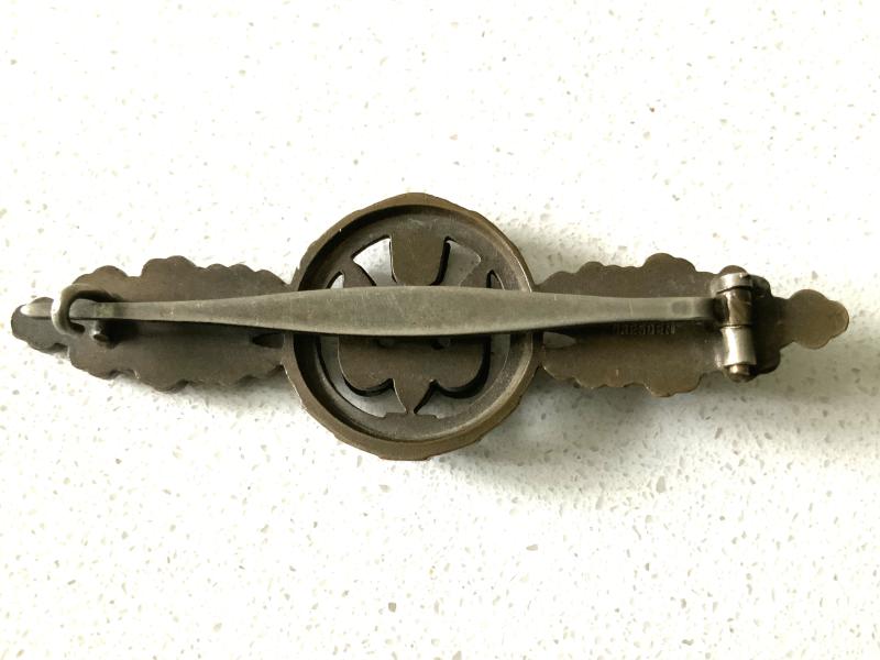 Luftwaffe bronze 20 mission award, maker marked G.H.Osang Dresden. Some age and wear.