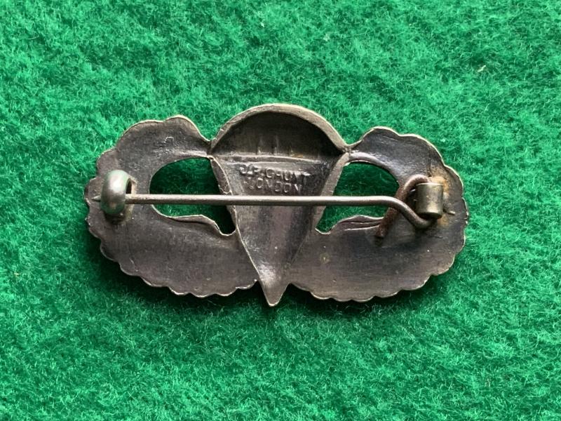 Here is an rare English made US Army Paratrooper Wing. English pin back and maker marked J.R. Gaunt London.