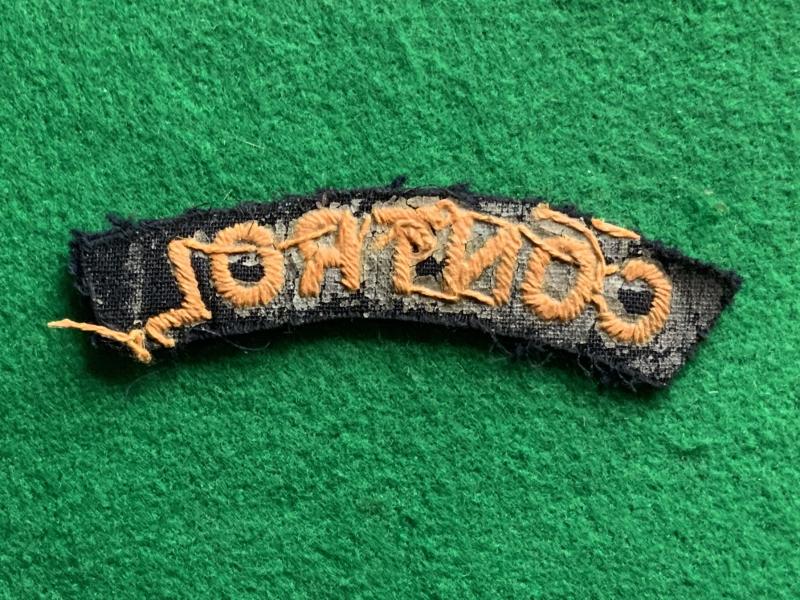 WWII Civil defence Control title. Embroidered on black wool.