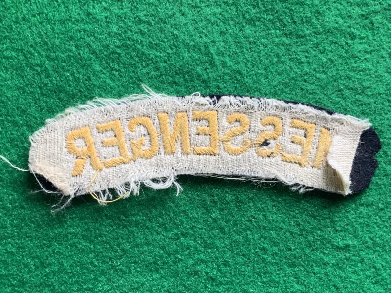 WWII Cilvil Defense Messenger tittle. Embroidered on black wool.