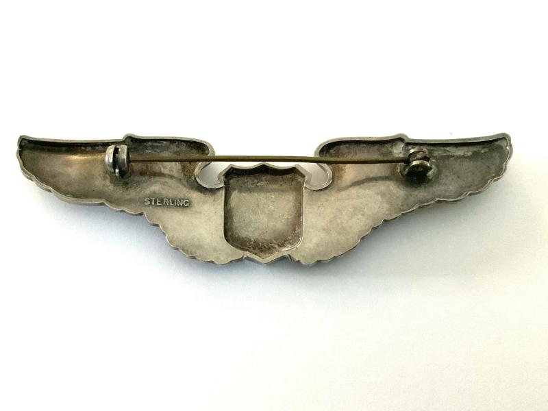 USAAF Pilot wing, pin back with safety catches and marked Sterling. A good detailed strike. Measures 3”