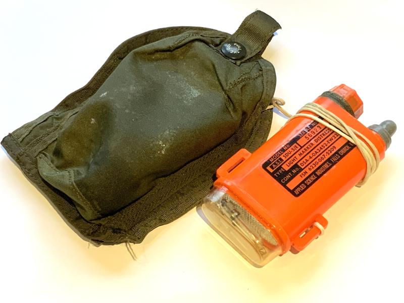 USAF/US Navy Emergency Beacon complete. USGI SDU-5/E Light marker distress strobe. Used condition strobes have not been tested. Complete with issue pouch.