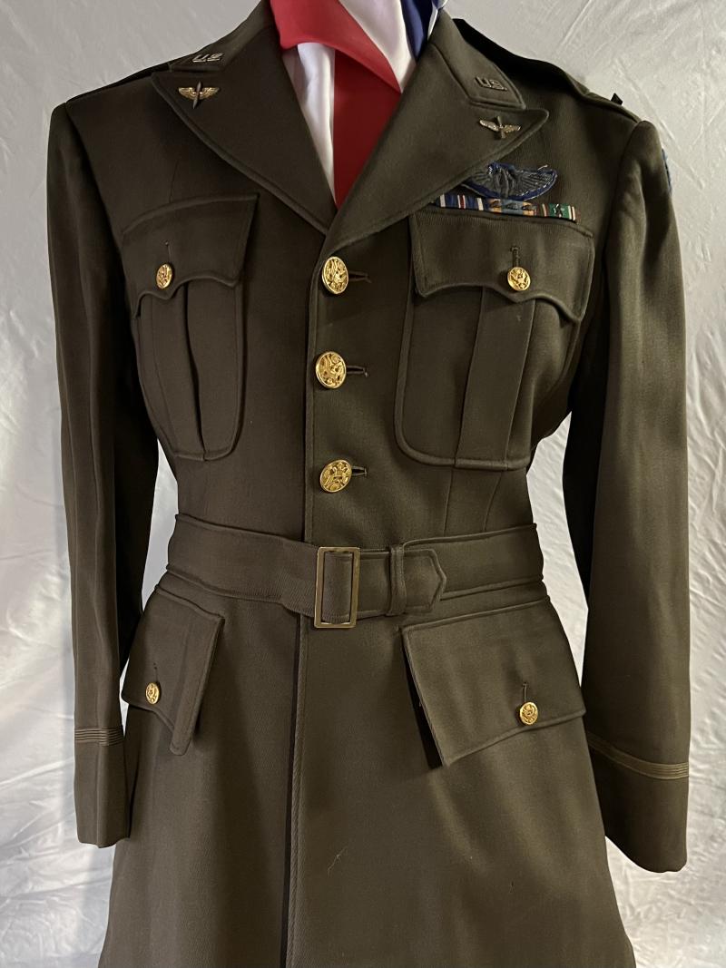 Lieutenant rank to the shoulders and Officers aviation branch and US letters to the lapels. Also a bullion Air Corps patch to the left shoulder. Condition overall is good with age and service wear for a tunic of 83 years.