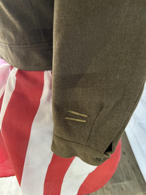 Fully badged with 101st patch,Allied Airborne patch, sleeve rank and enlisted collars in good condition. Combat infantry award, Paratrooper wings, Presidential Citation and Honorable Discharge badge and medal ribbon bar with Bronze Star ribbon with ETO and three campaign stars.