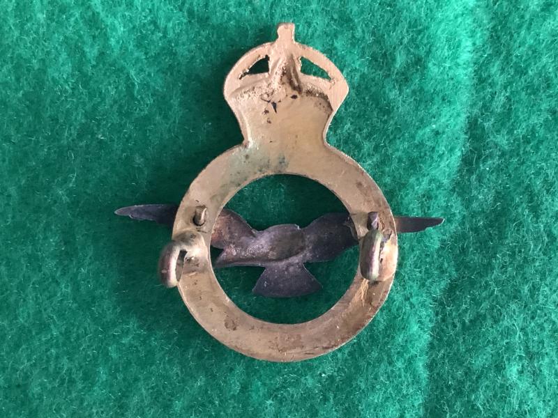 RAF Scarce badge is an officer's full-dress cap badge, known as a busby badge, featuring a King's Crown with lug fitting and in good condition.