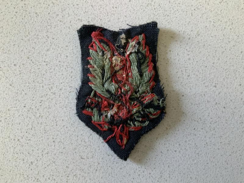 A SAS beret badge machine embroidered. Removed from collectors album has faint glue residue to the back.