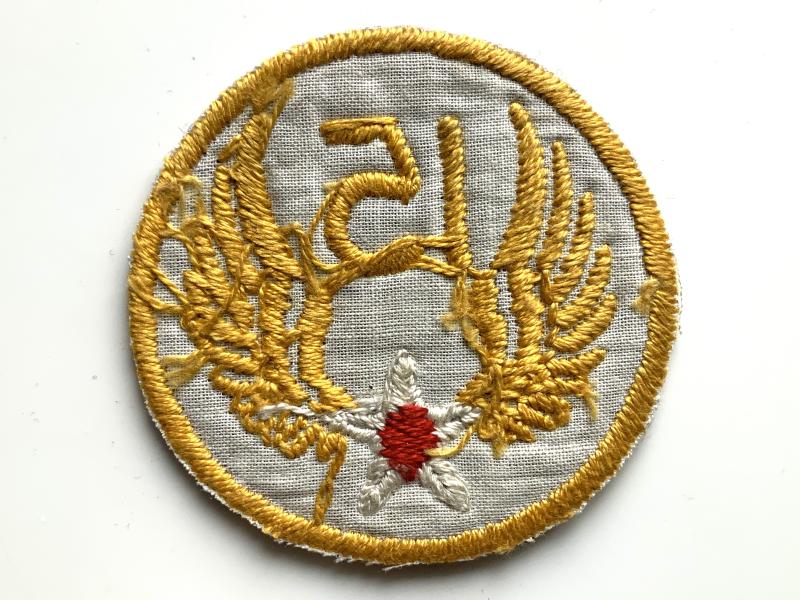 Locally made quality USAAF 15th Air Force patch Embroidered on blue wool backed by cloth.