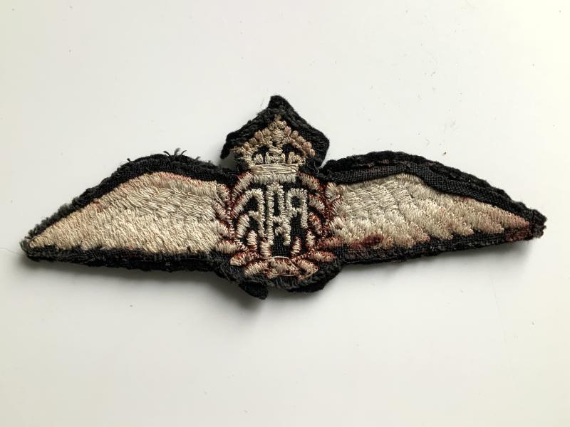 Here we have an early 1942 Commonwealth Air Training issue RAF Pilots Wings. Flat version with a plain backing, nine feathers pattern. Used, removed from uniform with age and lots of service wear, A good original example. Slight tear to the right of the crown.