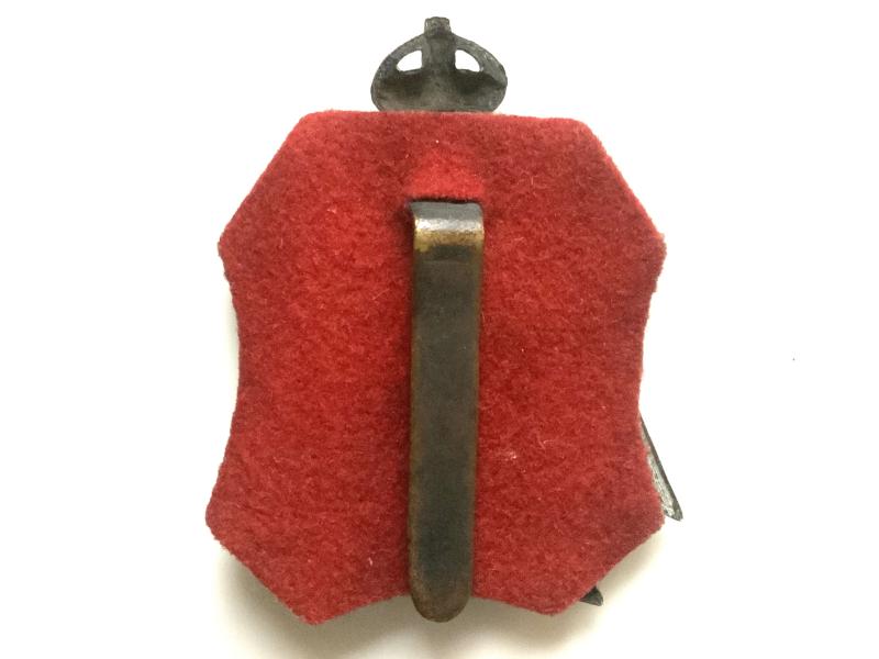 Kings Royal Rifle Corps Cap badge with the red backing. Slider fitting, with age and service wear.