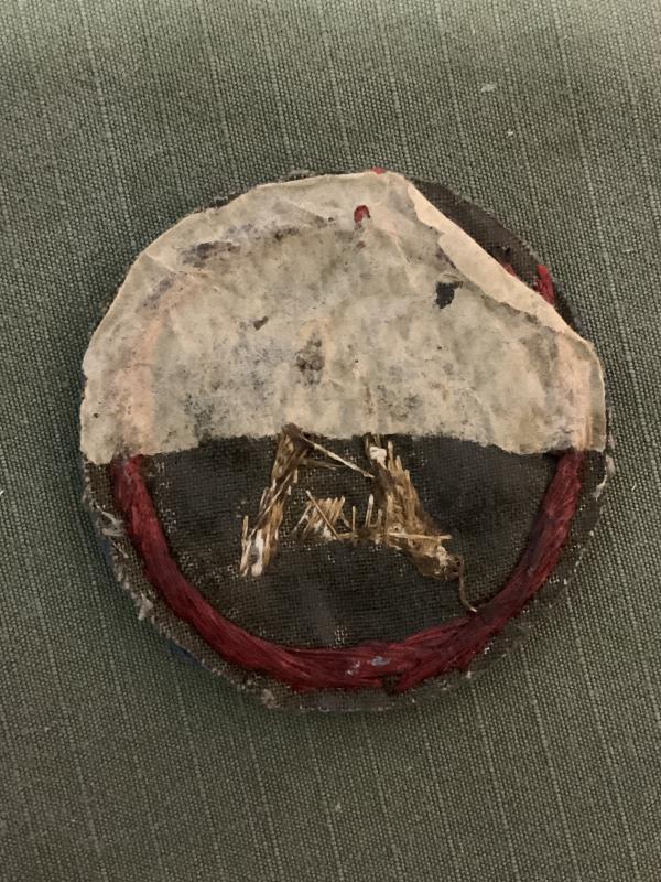 A 3rd Army Officer’s hand embroidered sleeve patch in bullion thread on wool. Retains some of the paper backing. Slight moth as indicated on image 3.
