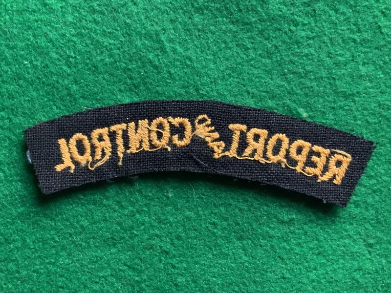 WWII Civil Defence Report and Control Title. Embroidered on black wool.