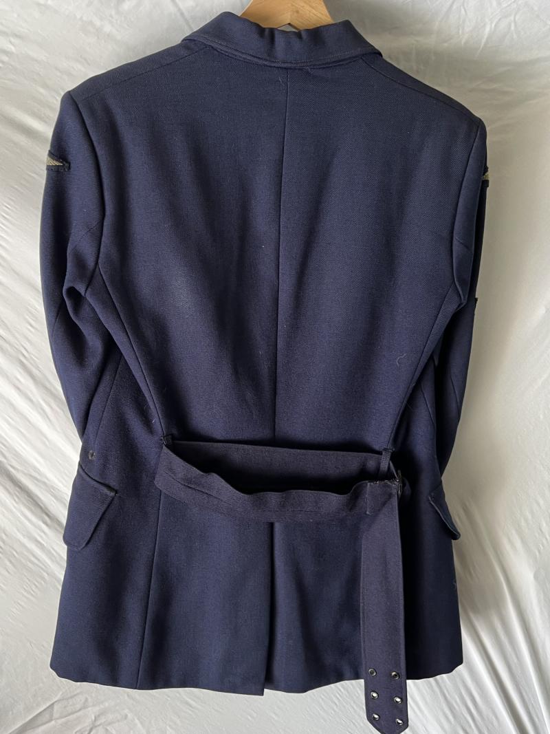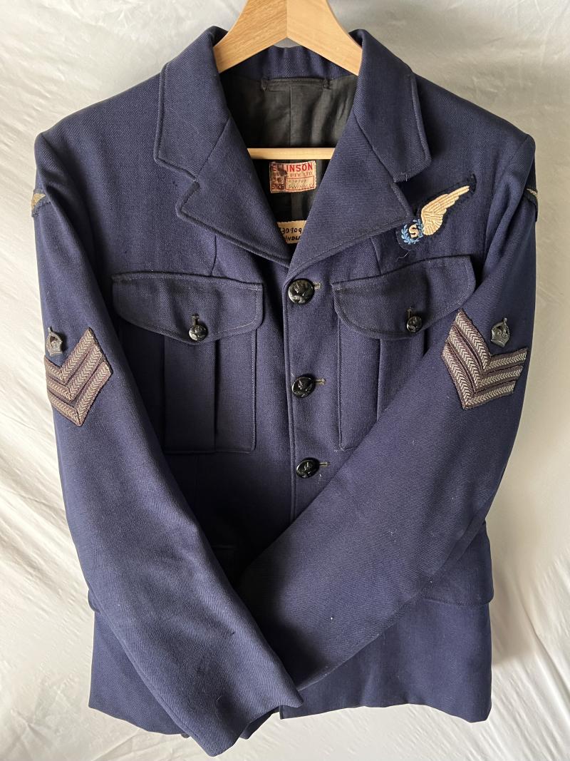 RAAF Flight Sergeant Signaller tunic in the dark blue with belt. Named and dated 1942, rank stripes with metal crown, with belt. In good condition.
